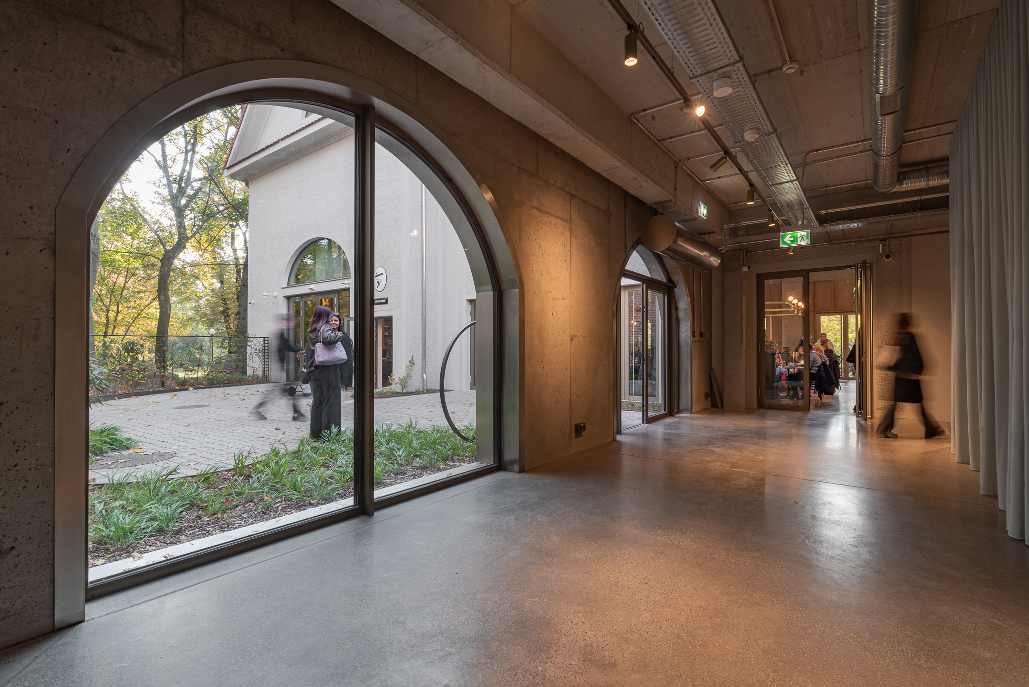 Skwer Lustrzany to reprezentacyjna przestrzeń zewnętrzna łącząca Betonhaus z otaczającą zabudową Parku Wilsona. Otwarta forma nadaje wydarzeniom lekkość i swobodę, a jednocześnie umożliwia realizację niestandardowych formatów eventowych.